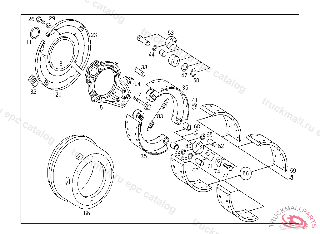 BRAKE SHOE , EXHAUST STOCK OF OLD PARTS NUMBER FIRST UP TO FRON AXLE D 027673,E 092867,G 009579, Replaced By: A3934202419