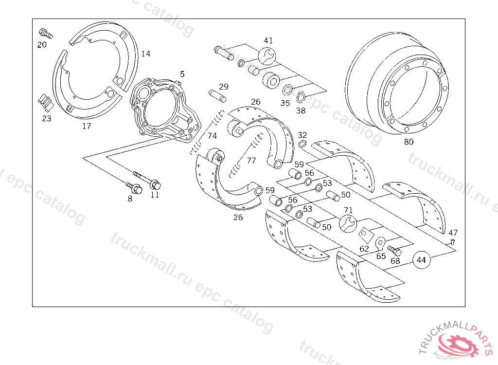 BRAKE SHOE , EXHAUST STOCK OF OLD PARTS NUMBER FIRST UP TO FRON AXLE D 027673,E 092867,G 009579, Replaced By: A3934202419