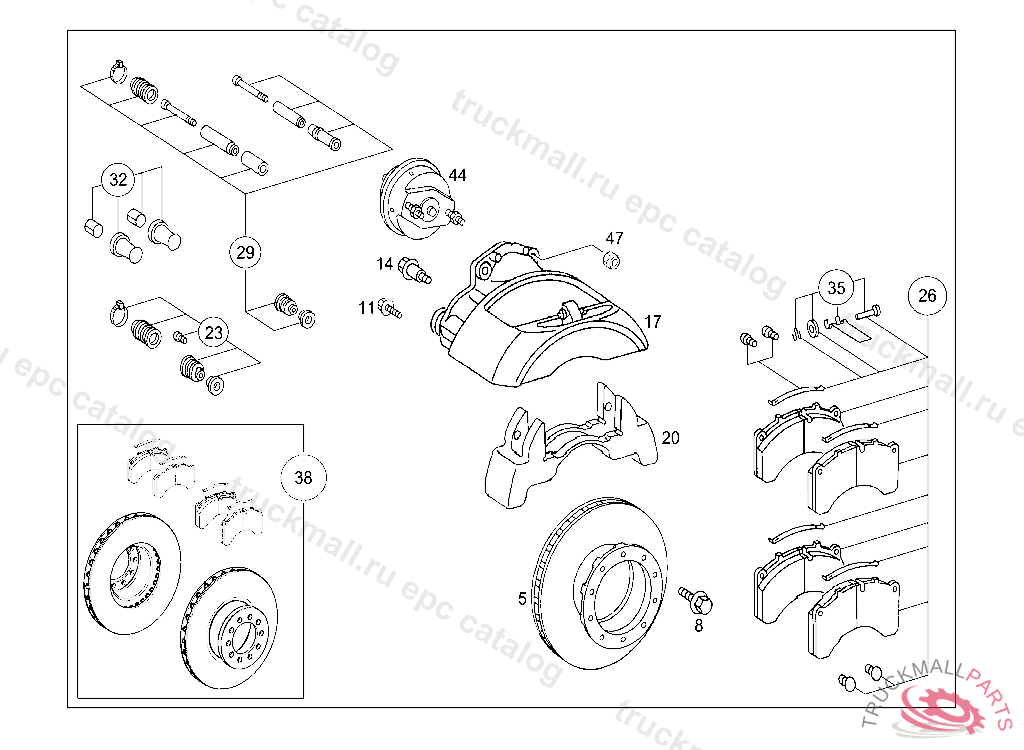 CALIPER LEFT, WITHOUT BRAKE ANCHOR AND BRAKE LINING KNORR