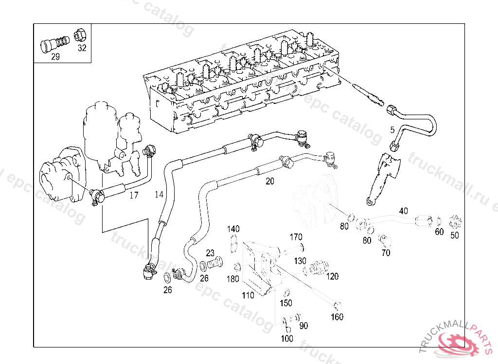 LINE LINE TO CYLINDER HEAD,*0014059 FIRST EXHAUST STOCK OF OLD PARTS UP TO ENGINE 831523, Replaced By: A9060903376
