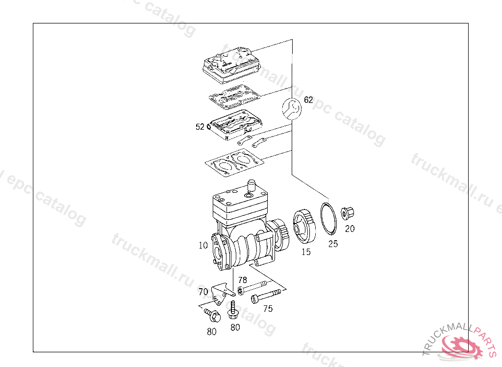AIR COMPRESSOR TWO-CYLINDER WABCO 636CCM,*0434617 PART IS ONLY OR ALSO SUPPLIED AS RECONDITIONED PART