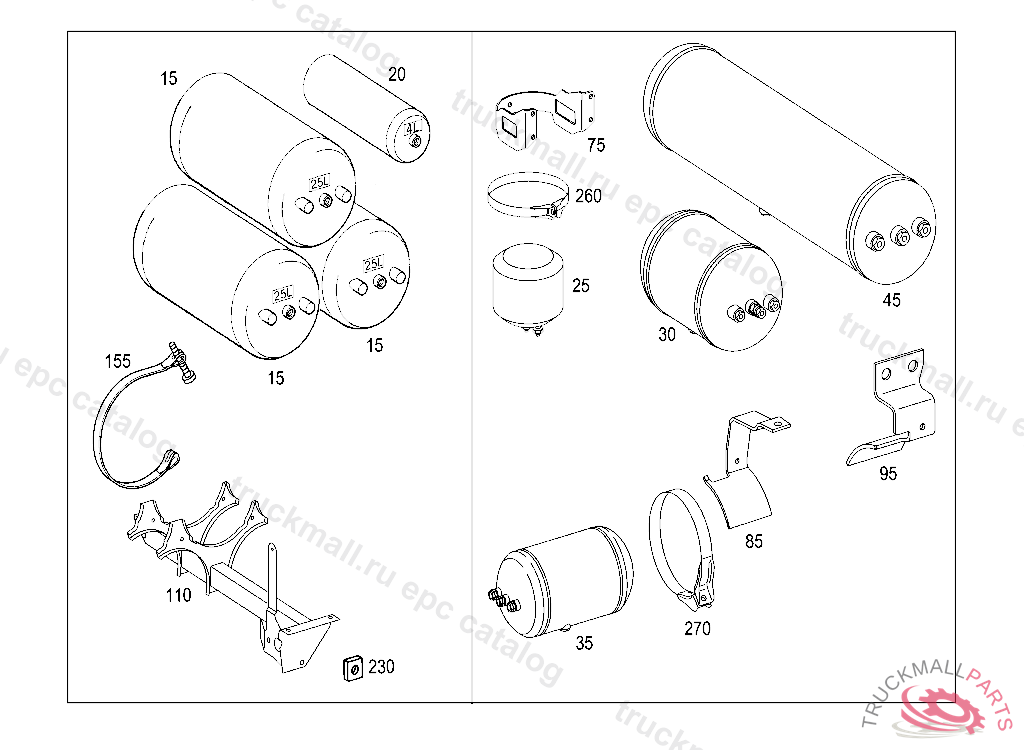 RESERVOIR STEEL 20L, BEI FAHRZEUGEN MIT STECKVERBINDUNG VOSS 230: ZUSAETZLICH STUTZEN "A 004 997 82 72" MIT O-RING "A 000 987 04 46" UND DRUCKRING "A 000 994 02 03" AN LUFTBEHAELTER MONTIEREN