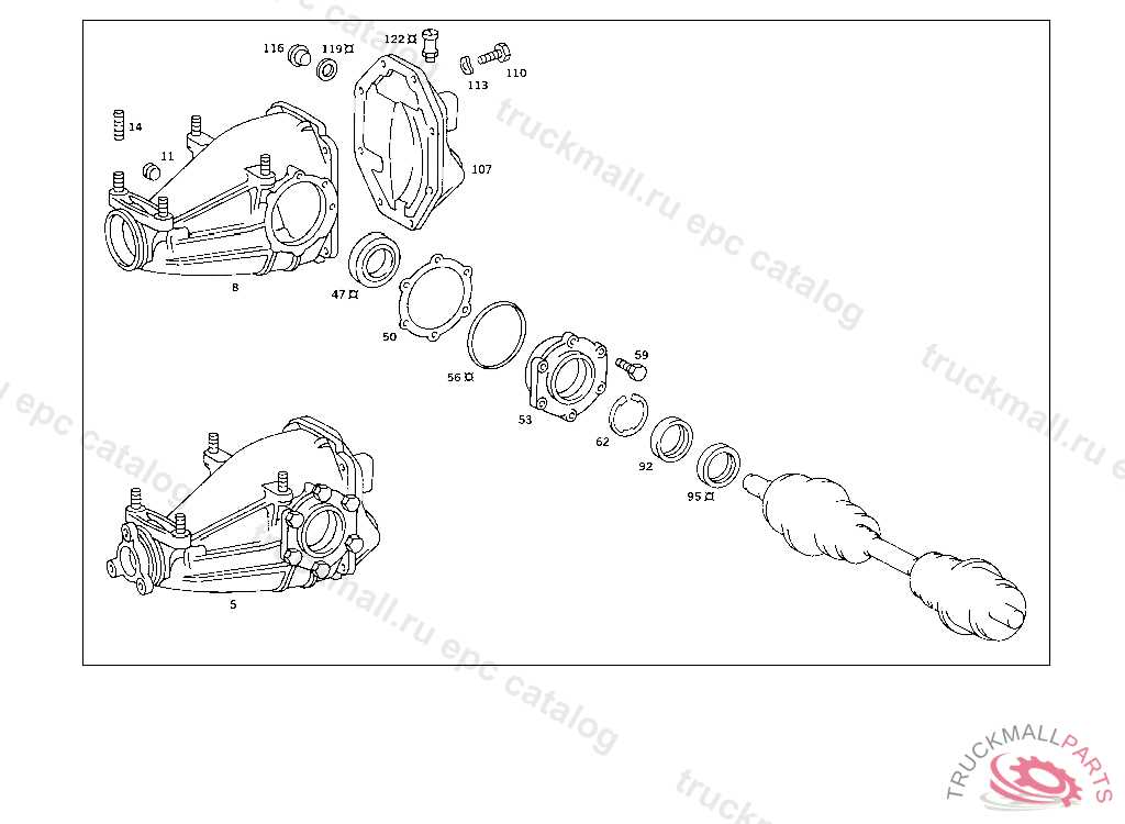 AXLE HOUSING , REAR AXLE HOUSING WITH DIFFERENTIAL,LESS SIDE BEARING CABS 003 103239 007 087551 086 007106 093 008992 102,103 240183 105 231729 183 015395 190 021957 193 002093 200 027295 280 000777 283 003632