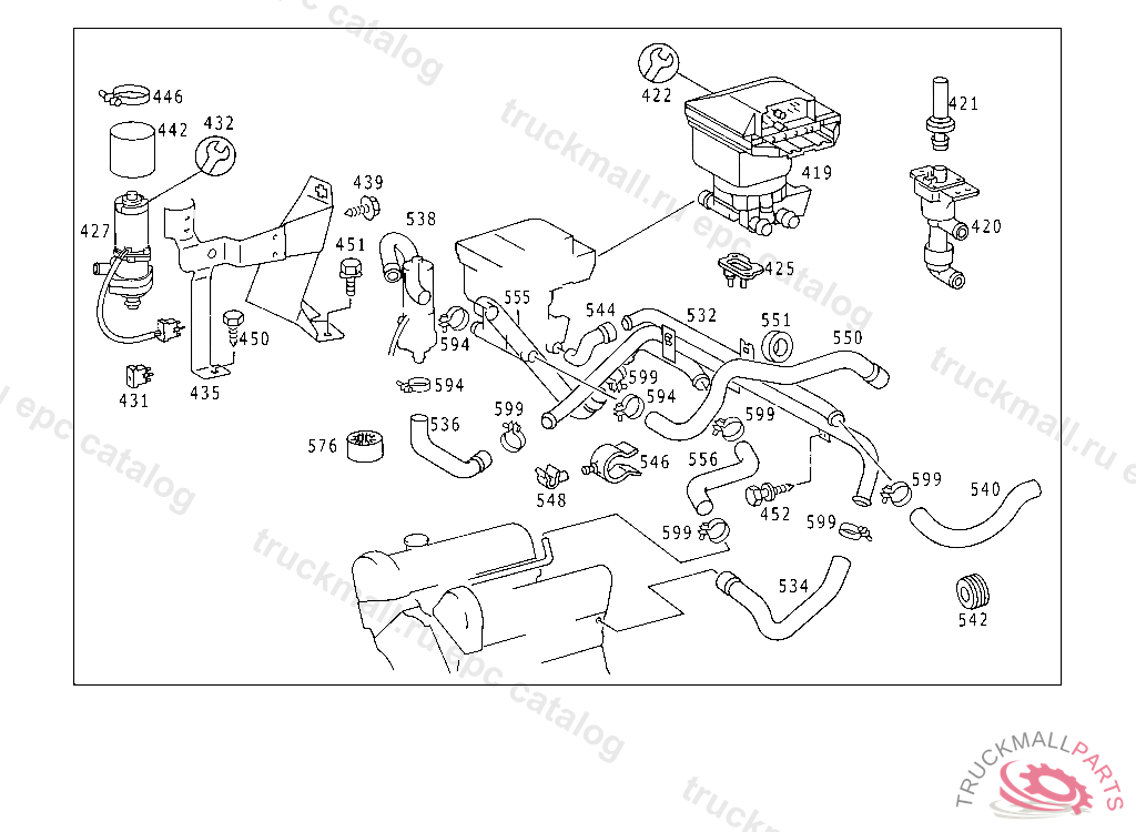 HOSE BETWEEN RETURN LINE AND ENGINE RETURN PIPE, UP TO CHASSIS107.026 001626 107.046 000004