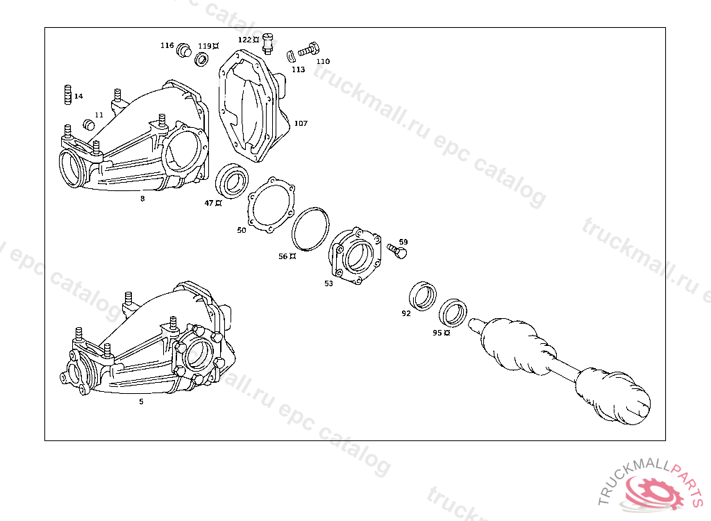 SEAL RING AXLE SHAFT, REAR AXLE HOUSING WITH DIFFERENTIAL AND WITH SIDE BEARING CAPS 003 103238 007 087550 086 007105 093 008991 102,103 240182 105 231728 183 015394 190 021956 193 002092 200 027294 280 000776 283 003631