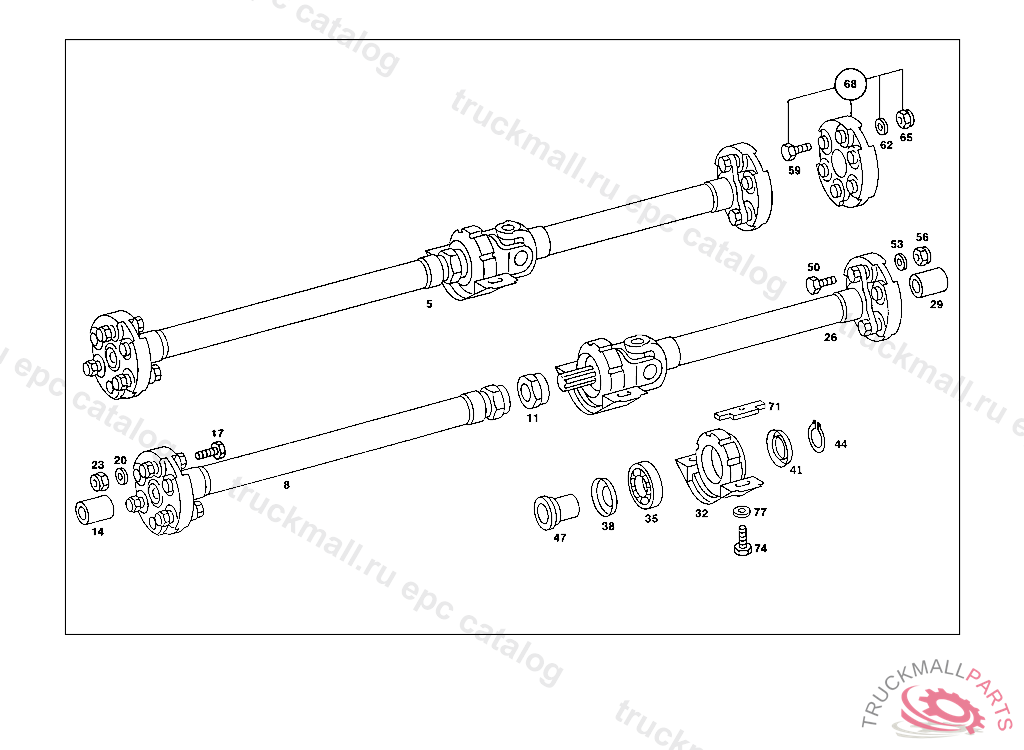 PROPELLER SHAFT ,026 001628 025 000839 EXCEPT FOR 000865 ALSO INSTALLED ON 000810-000816,000819-000827,000829-000832,000834-000837. 045 001194 ALSO INSTALLED ON 001034,001037,001038,001040,001044,001046,001052,001055,001056,001058,001060,001063,001065,001067, 001068,001070-001078,001081,001083-001091,001093-001097,001099-001101,001103-001192.