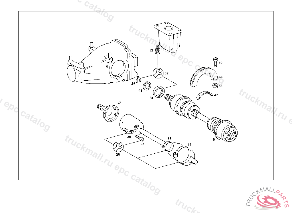 REPAIR KIT AXLE SHAFT SEAL RING, REAR AXLE HOUSING WITH DIFFERENTIAL AND WITH SIDE BEARING CAPS 003 103238 007 087550 086 007105 093 008991 102,103 240182 105 231728 183 015394 190 021956 193 002092 200 027294 280 000776 283 003631