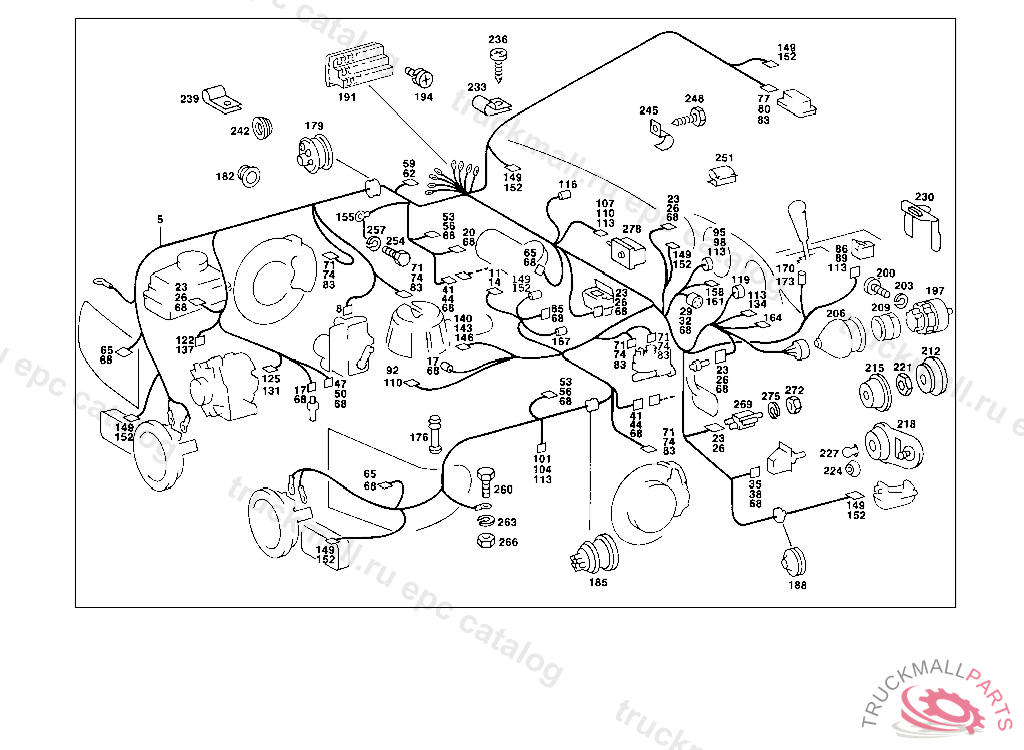 CABLE HARNESS MAIN CABLE HARNESS, FROM IDENT NO. 107.024 023686 107.044 050533 UP TO IDENT NO. 107.024 025404 107.044 053272 FROM CHASSIS SEE SA 11 163