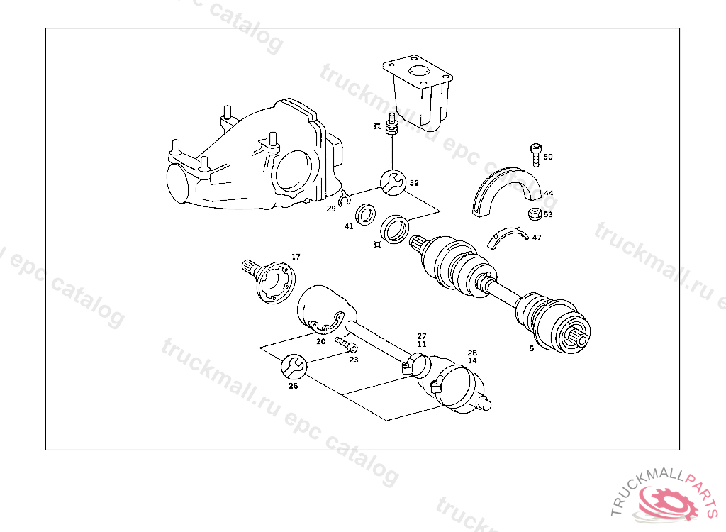 REPAIR KIT AXLE SHAFT SEAL RING, REAR AXLE HOUSING WITH DIFFERENTIAL AND WITH SIDE BEARING CAPS 003 103238 007 087550 086 007105 093 008991 102,103 240182 105 231728 183 015394 190 021956 193 002092 200 027294 280 000776 283 003631