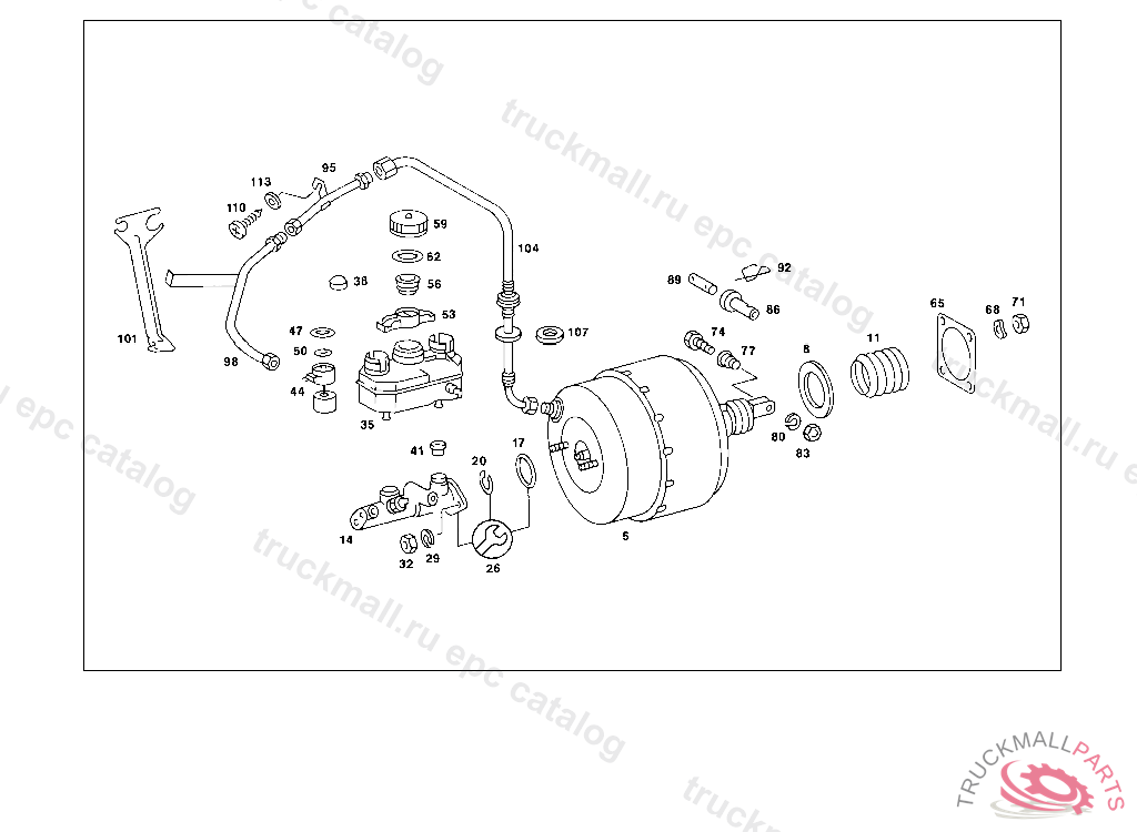 BRAKE BOOSTER ASSEMBLY , 10/50 / 12/52: 000 159696 003 079166 007 064069 102,103 149942 105 165000 20/60 / 22/62: 000 160203 003 078834 007 064270 102,103 149109 105 164999, Replaced By: A0024306830, +001A1232920150