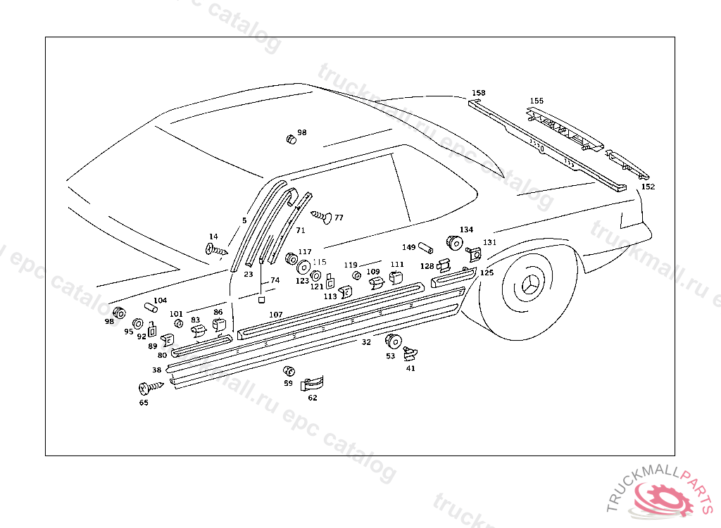 NUT BOTTOM GARNISH MOULDING TO REAR DOOR, REAR, 000 074246 003 036142 EXCEPT FOR 035979,036029 007 033468 102 053529 103 053849 105 068456 ALSO INSTALLED ON 068265,068282