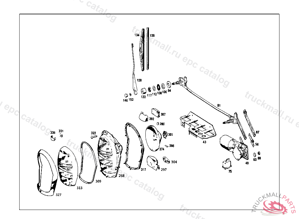 LIGHTING UNIT ASYMMETRICAL,WITHOUT DECORATIVE RING FOR COUNTRIES WITH R.H.TRAFFIC