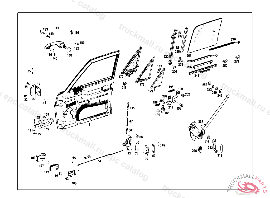 WINDOW REGULATOR , 016 UP TO CHASSIS 047184, 018 UP TO CHASSIS 049843, 019 UP TO CHASSIS 051513, Replaced By: A1087250302, +001A1237600102, +001A1237600020, +001A1087680113