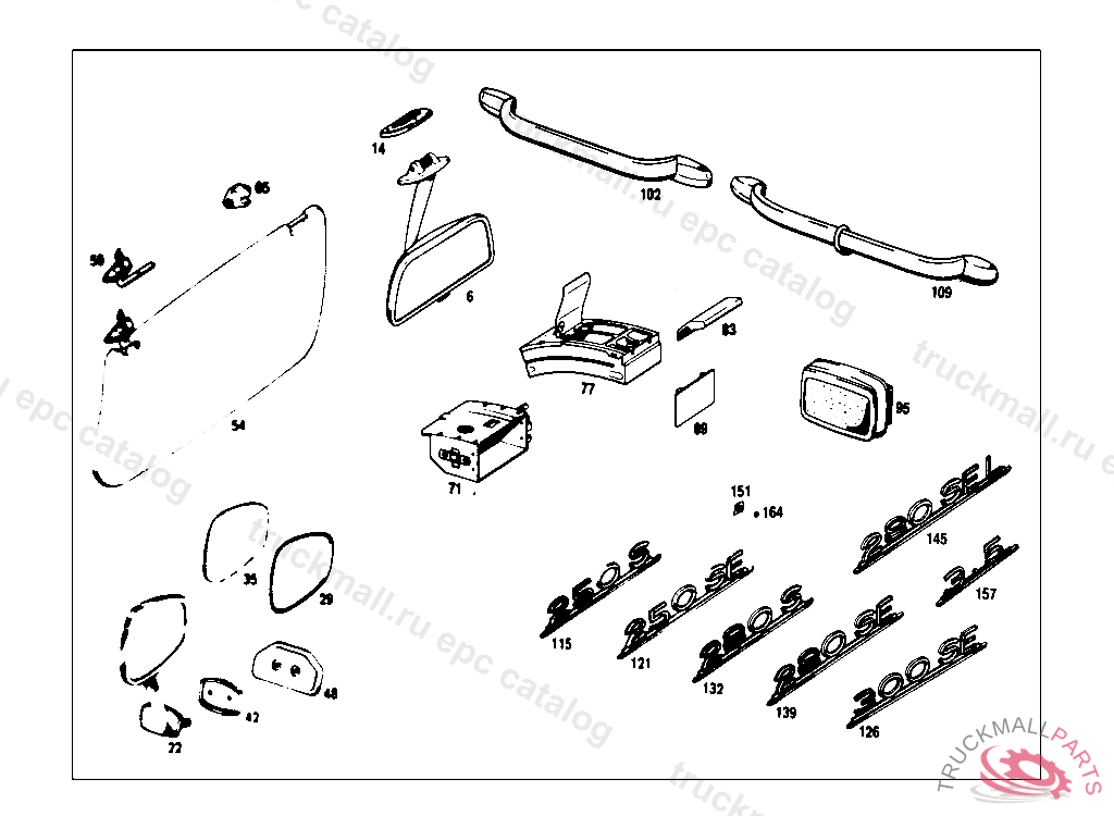 OUTSIDE REARVIEW MIRROR , UP TO CHASSIS: 108.012 053398 108.014 042066 108.015 002589 109.015 002147 113.043 002981