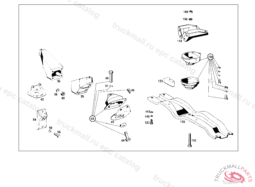 HEXAGON HEAD BOLT RUBBER MOUNTING TO SIDE MEMBER AND TO SUPPORT M10X20