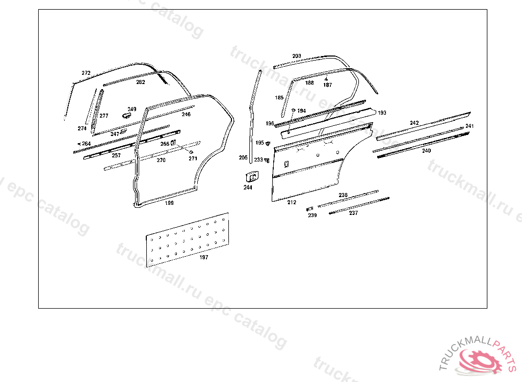 PANELLING RIGHT REAR DOOR, STATE COLOR NUMBER WHEN ORDERING,AND PLEASE STATE WHETHER FRONT SEAT BACKREST SHOULD BE MADE READY FOR INSTALLATION OF HEADRES T ENCLOSE SAMPLE OF VENEER WHEN ORDERING FROM CHASSIS:109.016 001859 109.018 002020 ONLY INSTALLED ON 109.016,018,056