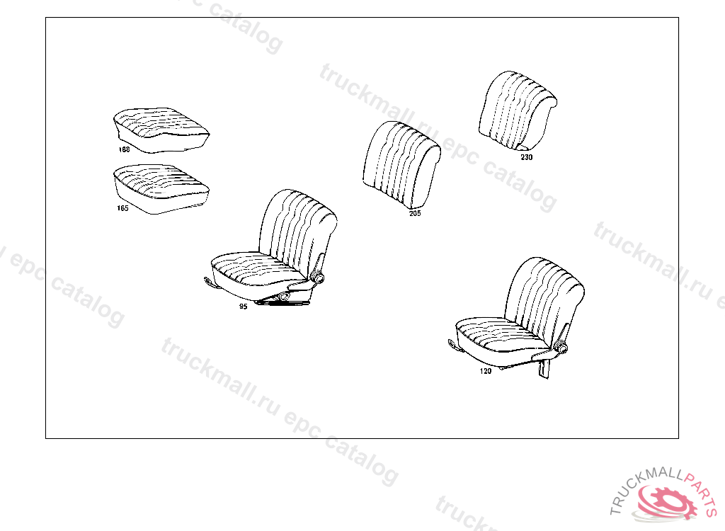 FRONT SEAT RIGHT,WITH HEIGHT ADJUSTMENT, STATE COLOR NUMBER WHEN ORDERING,AND PLEASE STATE WHETHER FRONT SEAT BACKREST SHOULD BE MADE READY FOR INSTALLATION OF HEADRES T UP TO CHASSIS: 109.015 001669