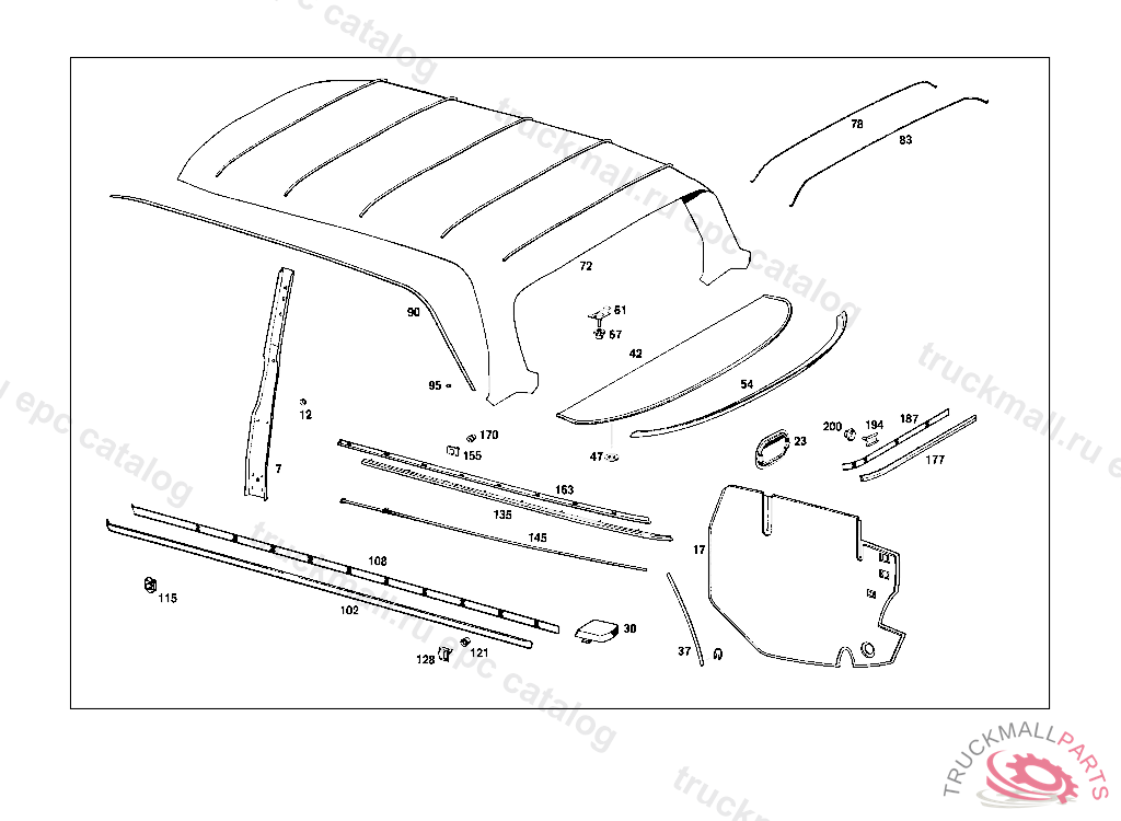 GARNISH MOULDING REAR BODY PANEL,BOTTOM RIGHT, 012 FROM CHASSIS 072967 , 016 FROM CHASSIS 011937 , 018 FROM CHASSIS 010467 , 019 FROM CHASSIS 010647