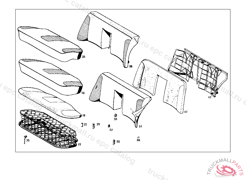 BUFFER REAR SEAT BENCH BACKREST FRAME MOUNTING, 016 UP TO CHASSIS 043198,018 UP TO CHASSIS 044203,019 UP TO CHASSIS 044488
