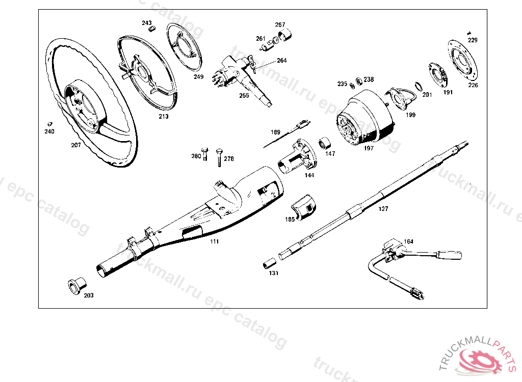 STEER. COLUMN JACKET TUBE , 000,001,010 UP TO CHASSIS 130557,100,101,110 UP TO CHASSIS 225647 ON SPECIAL REQUEST,DB POWER STEERING