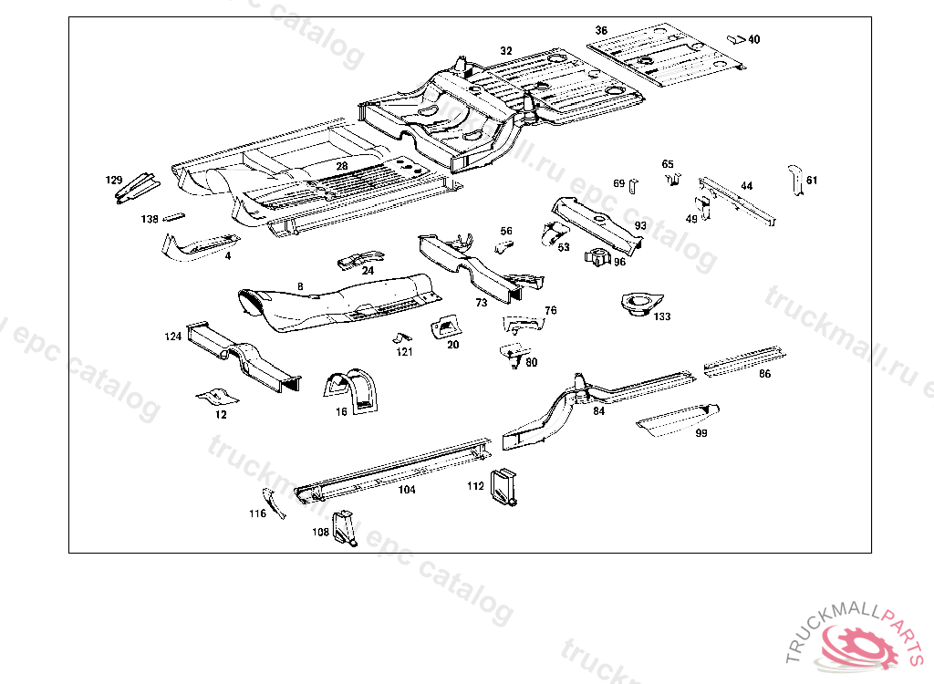 FLOOR REAR, 000,001,004,010 FROM CHASSIS 130558-140938,100,101,104,110 FROM CHASSIS 225648-243417,002,003,005,011 UP TO CHASSIS 004976