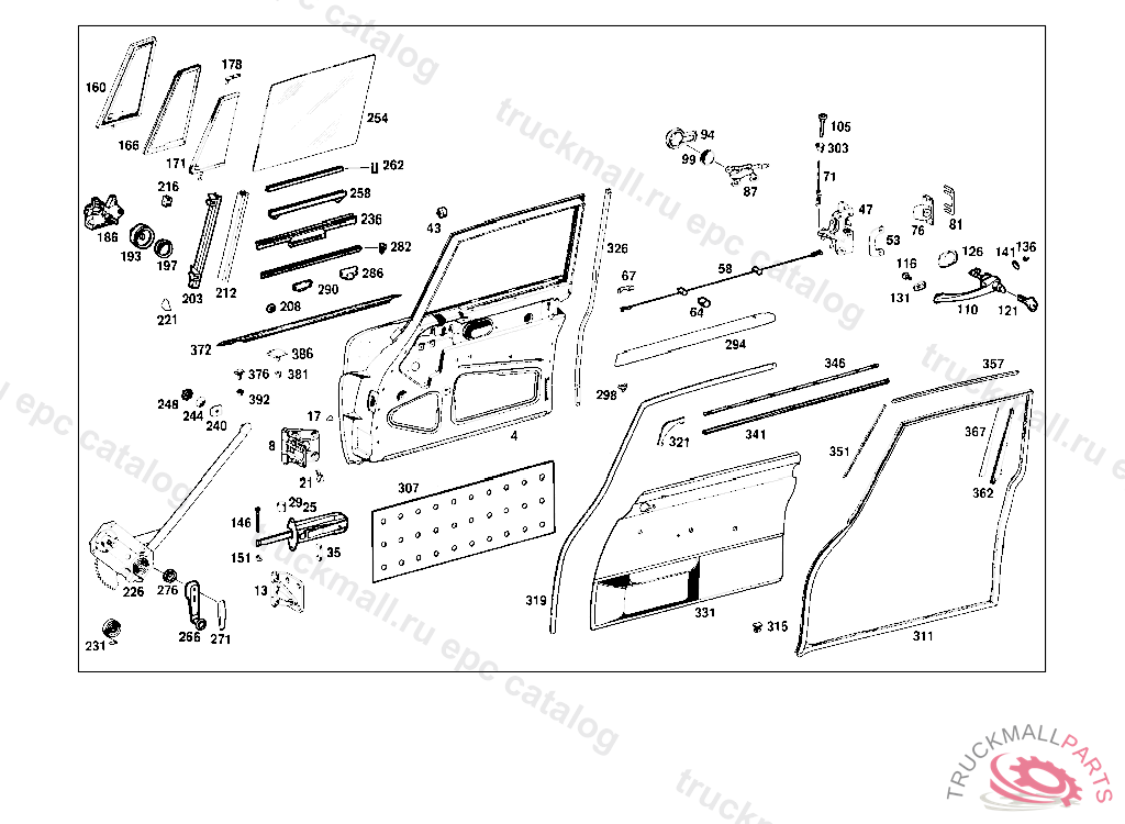 PANELLING RIGHT FRONT DOOR, STATE COLOR NUMBER WHEN ORDERING FROM CHASSIS: 111.010 017590-069692 UP TO CHASSIS: 110.010 130557 110.110 225647