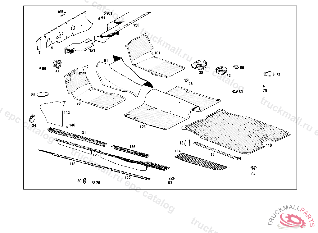 LINING REAR FLOOR, 000,001,004,010 FROM CHASSIS 130558,100,101,104,110 FROM CHASSIS 225684, STATE COLOR CODE NR.AND CHASSIS NO.WHEN ORDERING