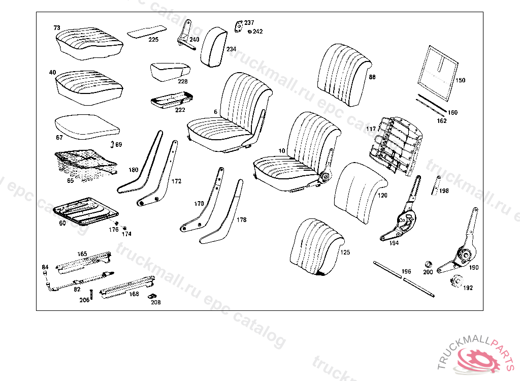 SEAT CUSHION LEFT, STATE COLOR NUMBER WHEN ORDERING UP TO CHASSIS: 110.000,001,004,010 130557 110.100,101,104,110 225647 111.010 069692