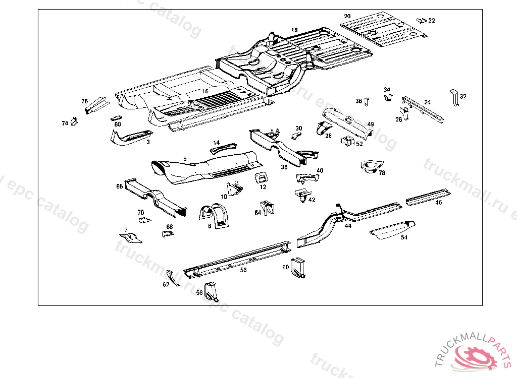 FLOOR REAR, 000,001,004,010 FROM CHASSIS 130558-140938,100,101,104,110 FROM CHASSIS 225648-243417,002,003,005,011 UP TO CHASSIS 004976