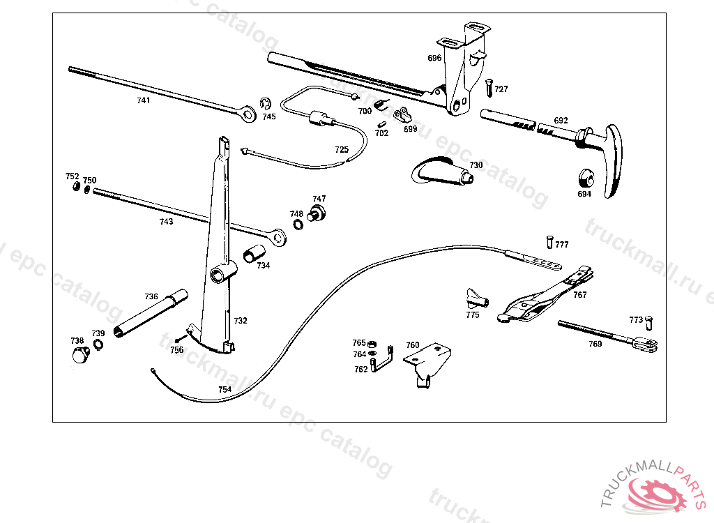 BRAKE CABLE FRONT, NOT FOR USE WITH MERCEDES-BENZ HYDRAULIC-AUTOMATIC CLUTCH 010,10/50,12/52 FROM CHASSIS 048977 ALSO INSTALLED ON,SEE FOOTNOTE 53,010,20/60,22/62 FROM CHASSIS 049091 ALSO INSTALLED ON 04 6334,048382,048491