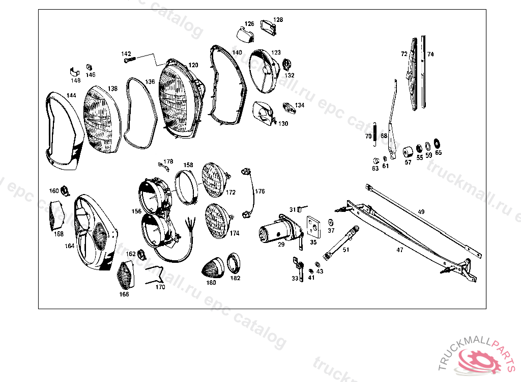 LIGHTING UNIT ASYMMETRICAL,WITHOUT DECORATIVE RING FOR COUNTRIES WITH R.H.TRAFFIC