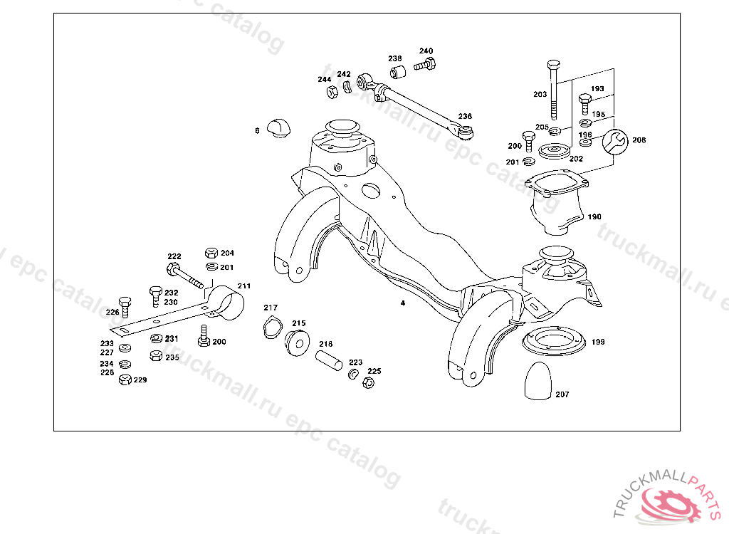 FRONT SUBFRAME , 010 UP TO CHASSIS 023660 EXCEPT FOR,SEE FOOTNOTE 22,012 UP TO CHASSIS 049855 EXCEPT FOR,SEE FOOTNOTE 23 MIND RANGE OF DELIVERY