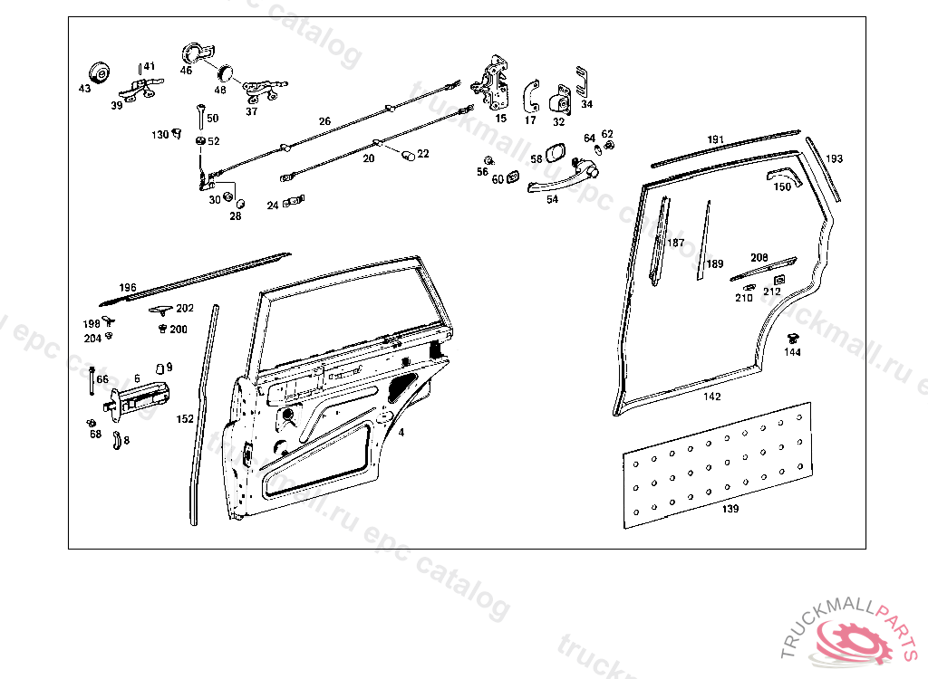 PANELLING RIGHT REAR DOOR FABRIC TRIM, 012 UP TO CHASSIS 036825 EXCEPT FOR,SEE FOOTNOTE 39 WHEN ORDERING,STATE COLOR AND CHASSIS NO.