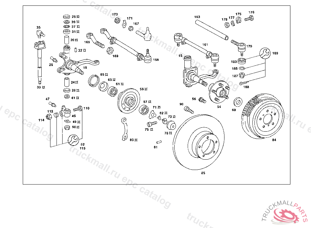 STEERING KNUCKLE LEFT TO FRONT AXLE WITH DISC BRAKES, 010,10/50,12/52 FROM CHASSIS 048977 ALSO INSTALLED ON,SEE FOOTNOTE 24,010,20/60,22/62 FROM CHASSIS 049091 ALSO INSTALLED ON 04 6334,048382,048491,012 FROM CHASSIS 070638 012 UP TO CHASSIS 094381 ALSO INSTALLED ON 103498-103884