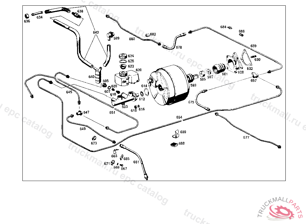 BRAKE BOOSTER ASSEMBLY , 010,10/50,12/52 UP TO CHASSIS 060921, 10,20/60,22/62 UP TO CHASSIS 061081,012,10/50,12/52 UP TO CHASSIS 135192,012,20/60,22/62UP TO CHASSIS 135465 NOT FOR USE WITH MERCEDES-BENZ HYDRAULIC-AUTOMATIC CLUTCH, Replaced By: A0004305530, +001A0004313607