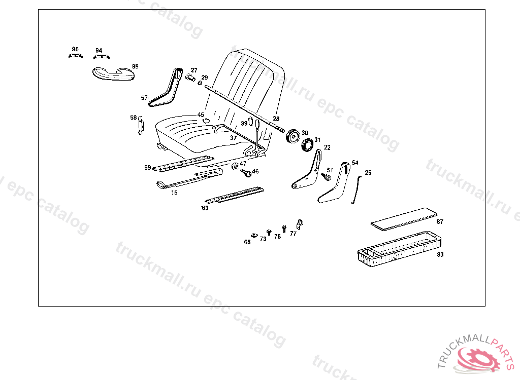 FRONT SEAT RIGHT IMITATION LEATHER TRIM, STATE COLOR AND CHASSIS NUMBER WHEN ORDERING WHEN ORDERING, PLEASE STATE WHETHER BACKREST SHOULD BE MADE READY FOR INSTALLATION OF HEADREST044 013416