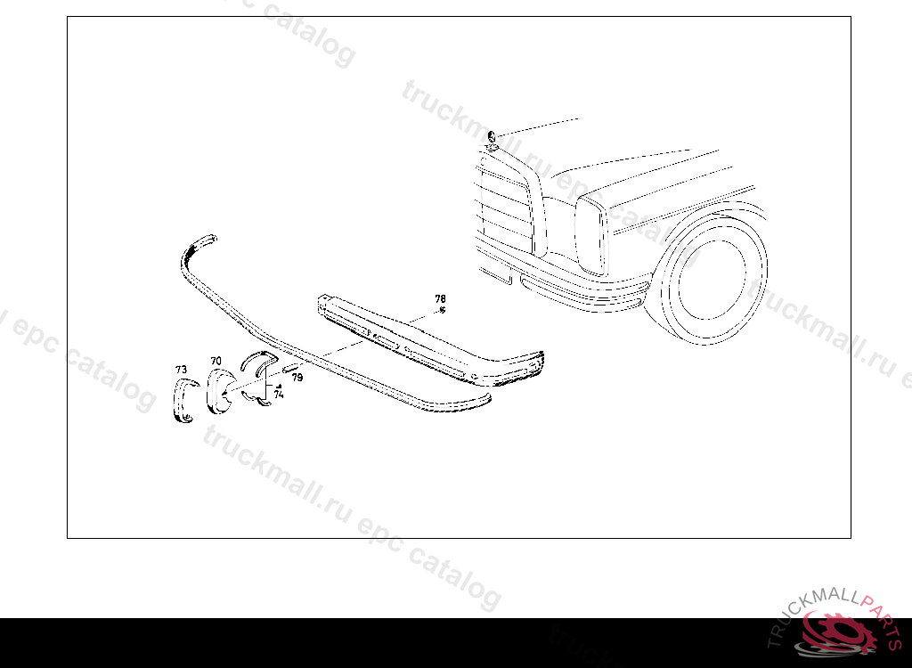 BUMPER GUARD REAR RIGHT, UP TO CHASSIS: 110.010 130557 110.110 225647 111.010 069692