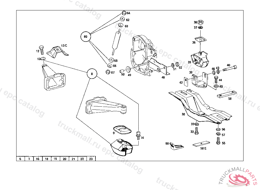 REPAIR KIT ENINE SHOCK ABSORBER MOUNTING PARTS, 026,028 047555 030 022730 033 041004