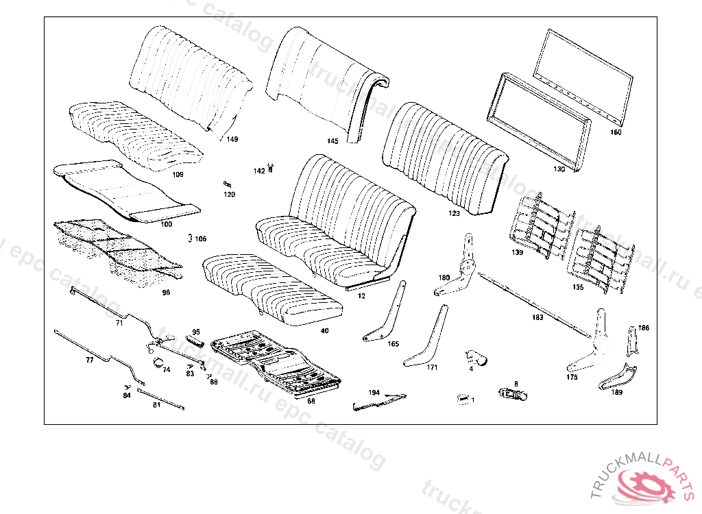 BACKREST FRAME , EXHAUST STOCK OF OLD PART NUMBERS FIRST UP TO CHASSIS: 114.010 025813 114.015,017 026315 115.010 027715 115.015 025170 115.110,112 060770 115.115 027933, Replaced By: A1159100634