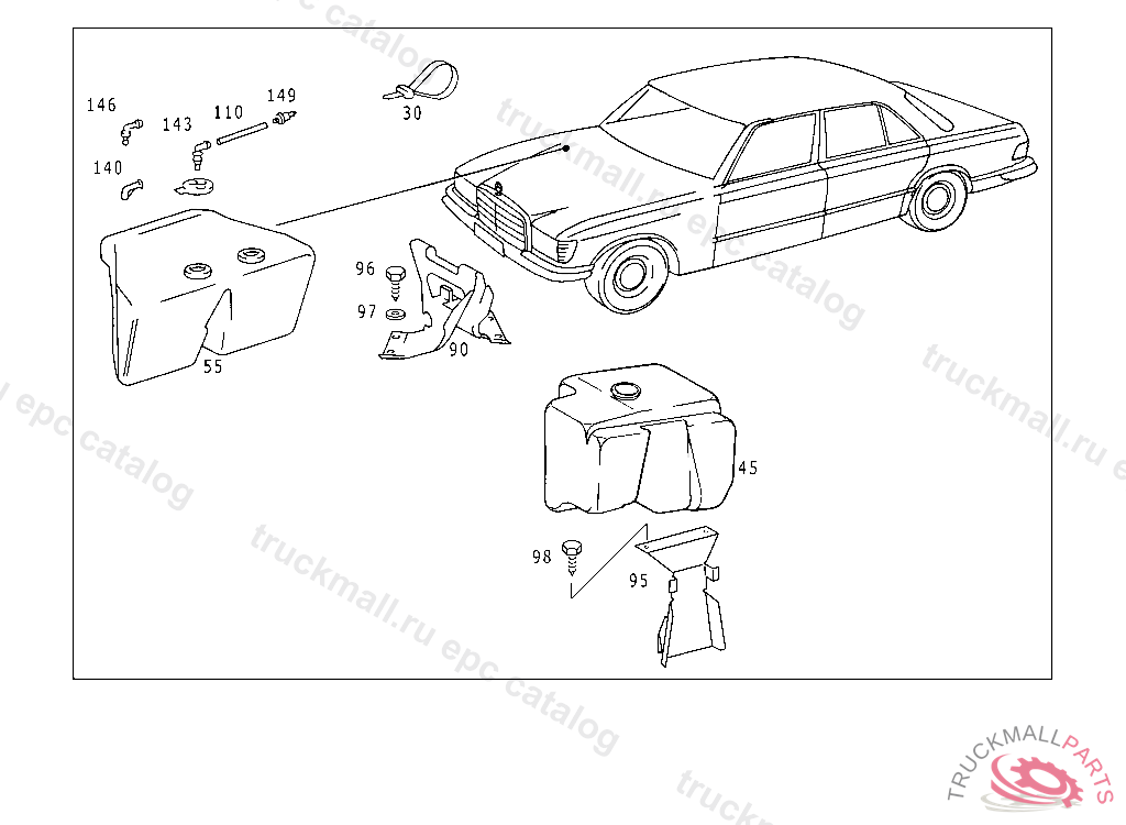 RESERVOIR FRONT RIGHT, UP TO CHASSIS: 107.024 021803, EXCEPT FOR: 021794,021802 107.044 047067, EXCEPT FOR: 047057,047061,047062,047064-047066.