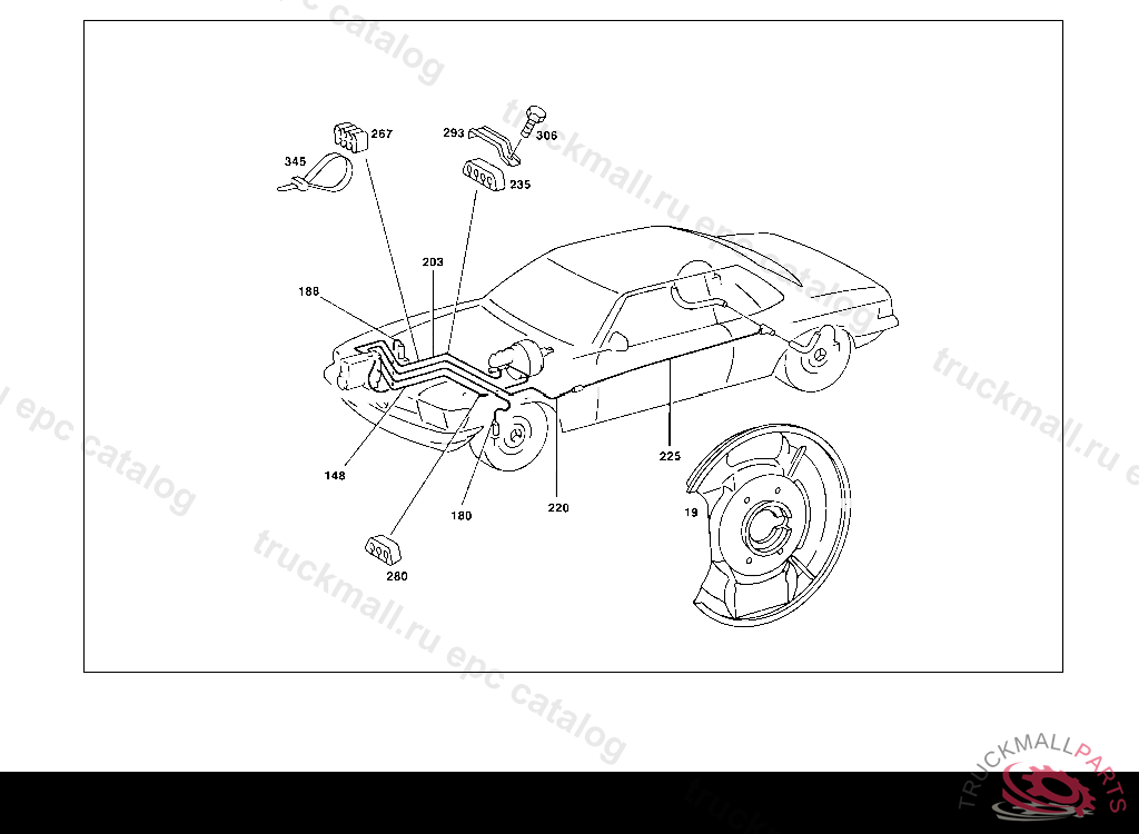 DAMPING STRIP BRAKE LINE TO FIRE WALL, 000 130186 003 066451 007 053318 083 002304 086 001762 093 001874 102,103 113215 105 135079 183 004049 190 005029