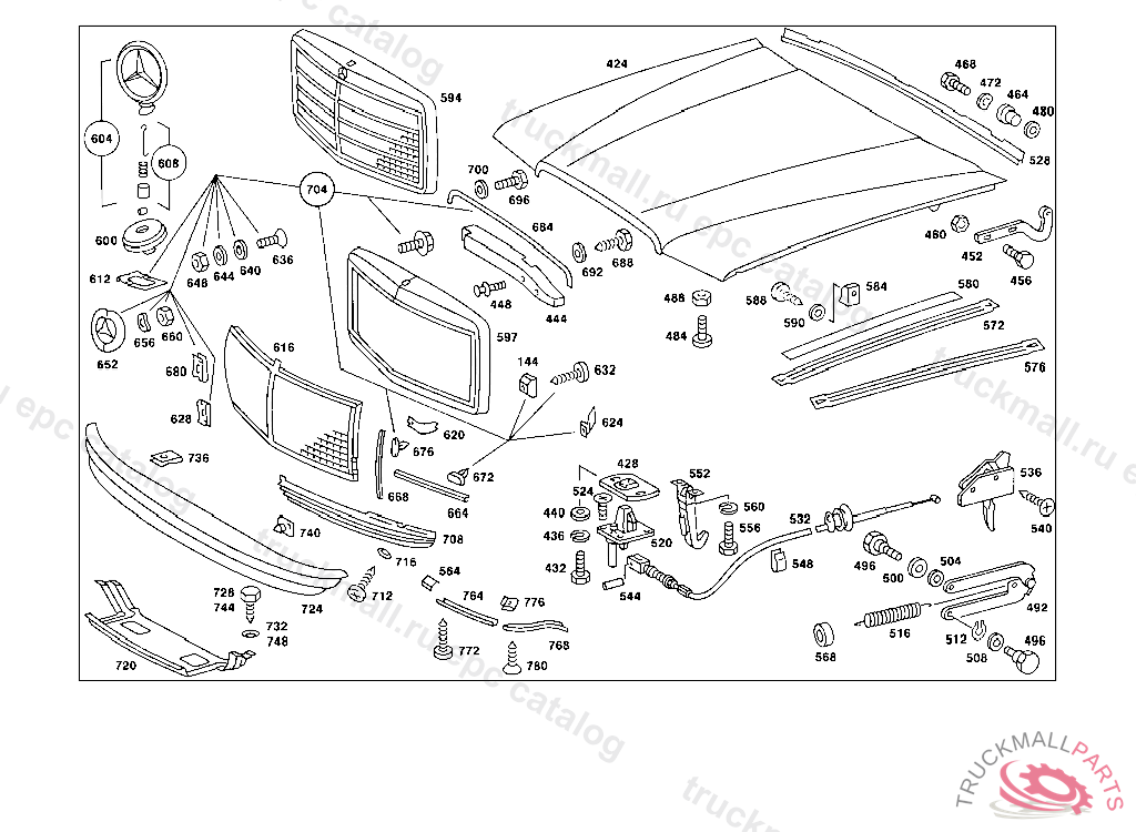 RADIATOR GRILLE SHELL LESS MERCEDES STAR, FROM CHASSIS: 020 011953 024 013314 025,029 000001 028 013181 032,033 010271