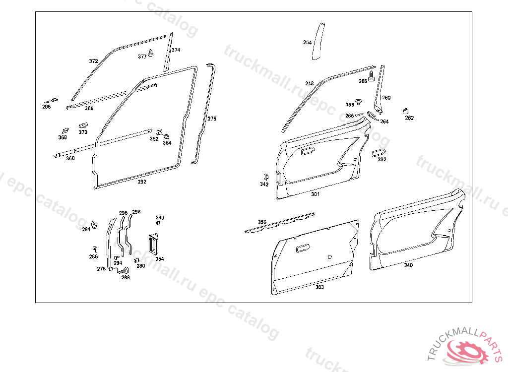 PANELLING RIGHT FRONT DOOR,REAR, BLACK NO.9007 CODE 001,061,101,161,201,261,461,901,961,BLUE NO.5020 CODE 062,162,262,462,962,BLUE NO.5045 CODE 002,102,202,902 MAHOGANY NO.8100 CODE 063,163,263,463,963 BEIGE NO.8103 CODE 064,164,264,464,964 PARCHMENT NO.8115 CODE 065,165,265,465,965, PARCHMENT NO.8263 CODE 005,105,205,905 OLIVE-GREEN NO.6028 CODE 166,266,466,966,BAMBOO NO.8102 CODE 167,267,467,BAMBOO NO. 8262 CODE 004,104,204,904,RED NO.3030 CODE168,268,468 TOBACCO NO.8261 CODE 003,103,203,903,MOSS NO.6070 CODE 006,106,206,906