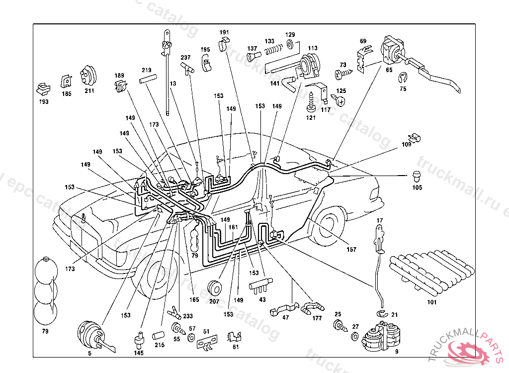 HOSE FROM DISTRIBUTOR ON RIGHT FRONT PANEL PILLAR TO ELEMENT ON REAR LID 4370 MM, ORDER BY THE METER 114.010,021,022 UNTIL PRODUCTION STOP, 114.011 UP TO CHASSIS 108425, 114.015,017 UP TO CHASSIS 245853, 114.023 UP TO CHASSIS 100866 AND FOOTN.63