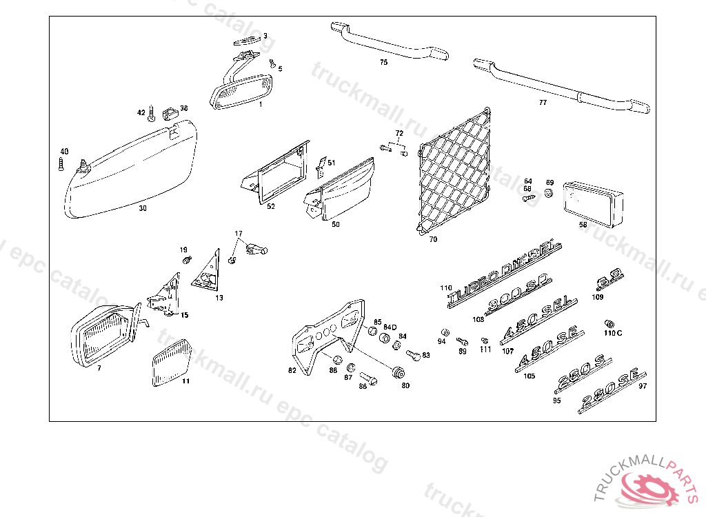 SUN VISOR , EXHAUST STOCK OF OLD PART NUMBERS FIRST UP TO CHASSIS: 020062951 024060108 032,033047747 036000607, Replaced By: A1168101110