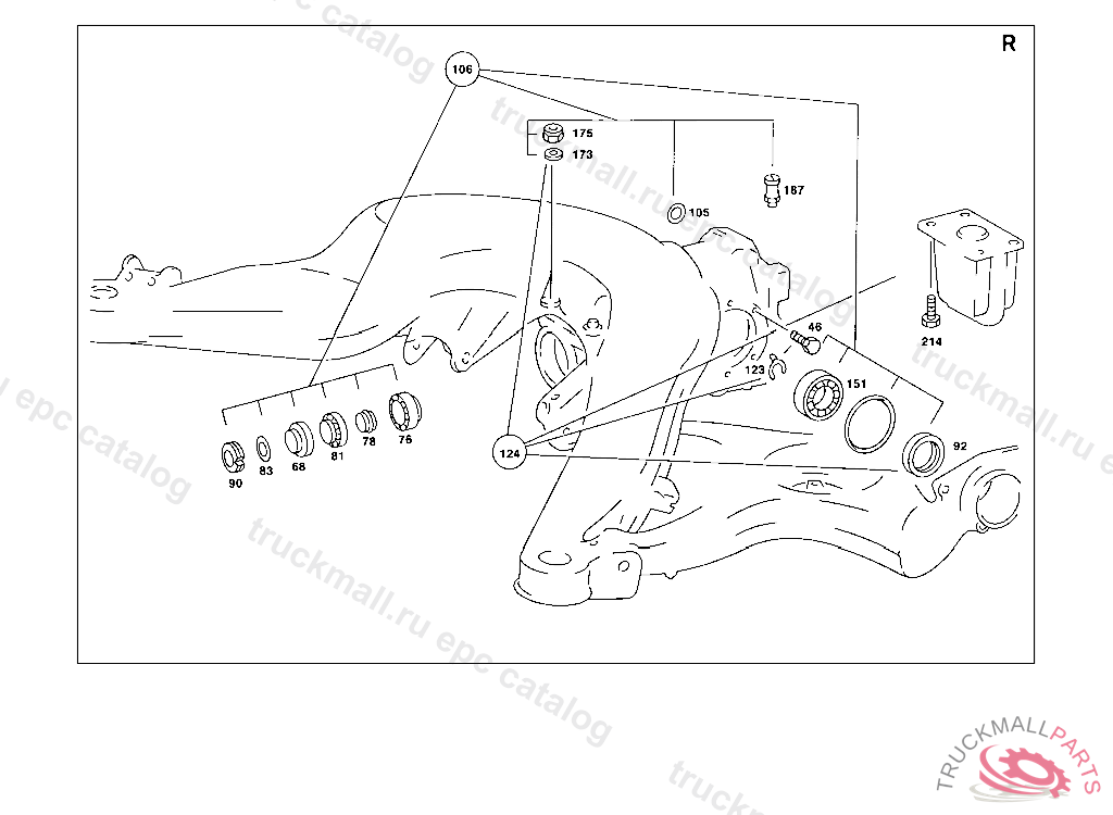 TAPERED ROLLER BEARING RING GEAR BEARING, REAR AXLE HOUSING WITH DIFFERENTIAL AND WITH SIDE BEARING CAPS 003 103238 007 087550 086 007105 093 008991 102,103 240182 105 231728 183 015394 190 021956 193 002092 200 027294 280 000776 283 003631