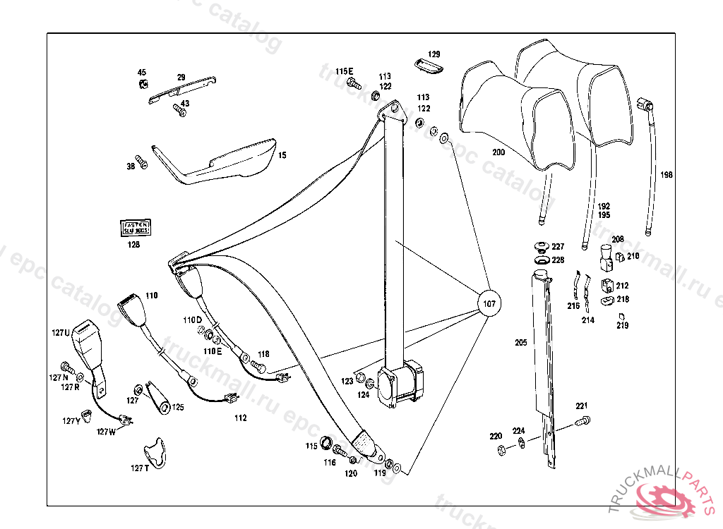 HEADREST , COLOR NO.: FOR TYPES 100,114,115 SEE PASSENGER CAR EQUIPMENT MANUAL,FOR TYPE 116,SEE FOOTN92,FOR TYPE 123 SEE FOOTN. 118