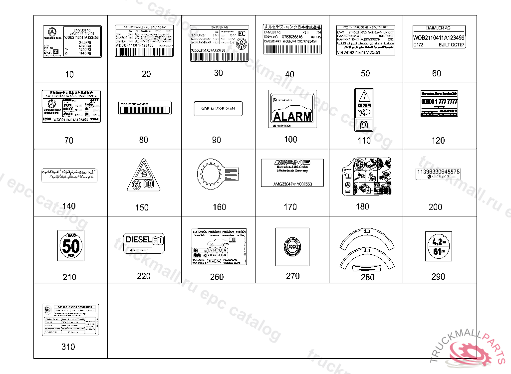 MODEL PLATE AT B-PILLAR WITH MANUFACTURER NAME DAIMLER AG, THEFT-RELEVANT PART