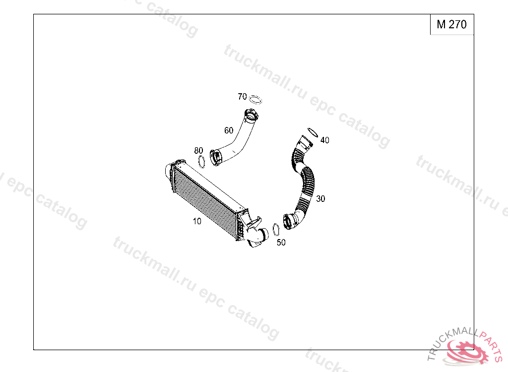 CHARGE AIR HOSE AT CHARGE AIR COOLER, RIGHT