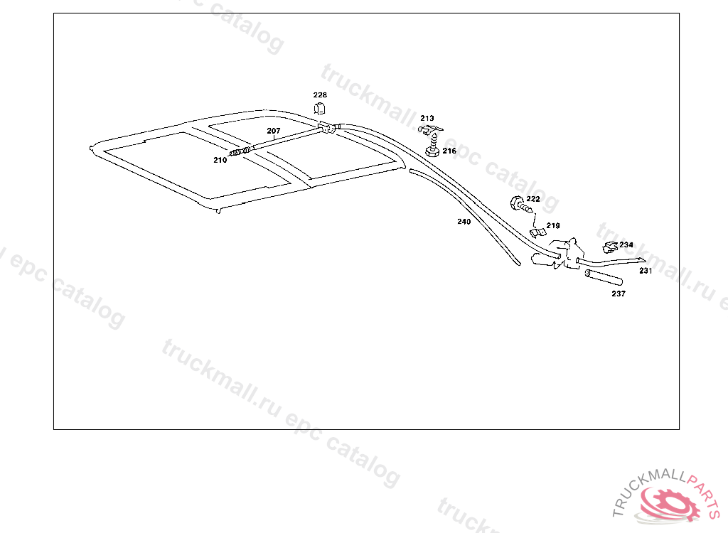 TUBE FROM MOTOR TO SLIDING ROOF PLATE, UP TO CHASSIS123.053 026853 153 002102 243 016627 123.043,050,150 UNTIL PRODUCTION STOP